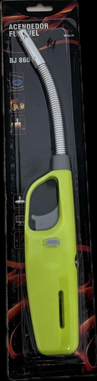 Acendedor multiuso a gás, com trava de segurança e regulador de chama.