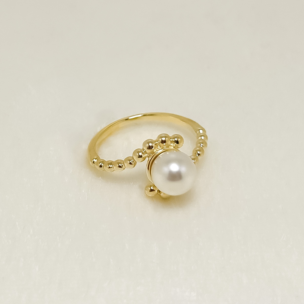 Anel de Pérola Detalhado - Banho Ouro 18K