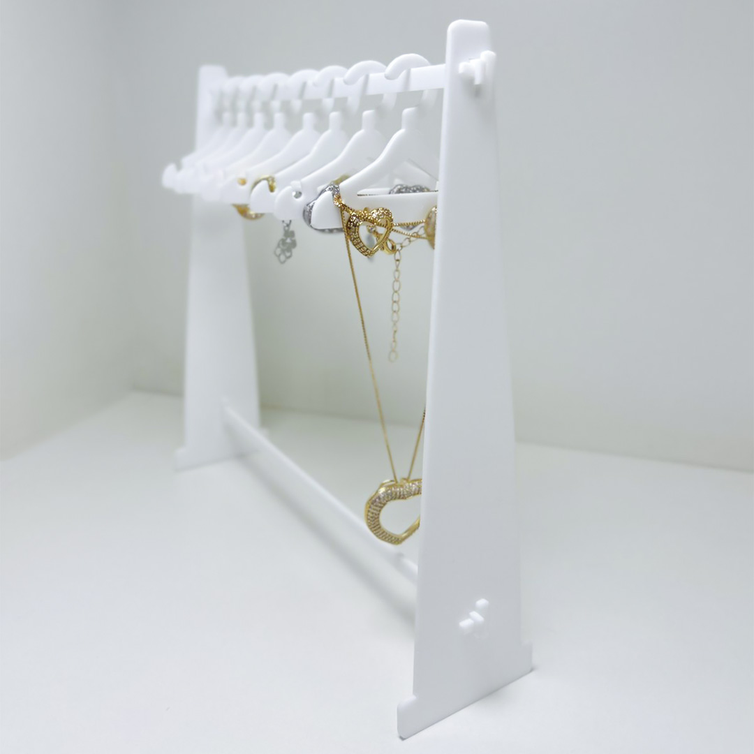 Expositor + 8 cabides para brincos e colares em acrílico.