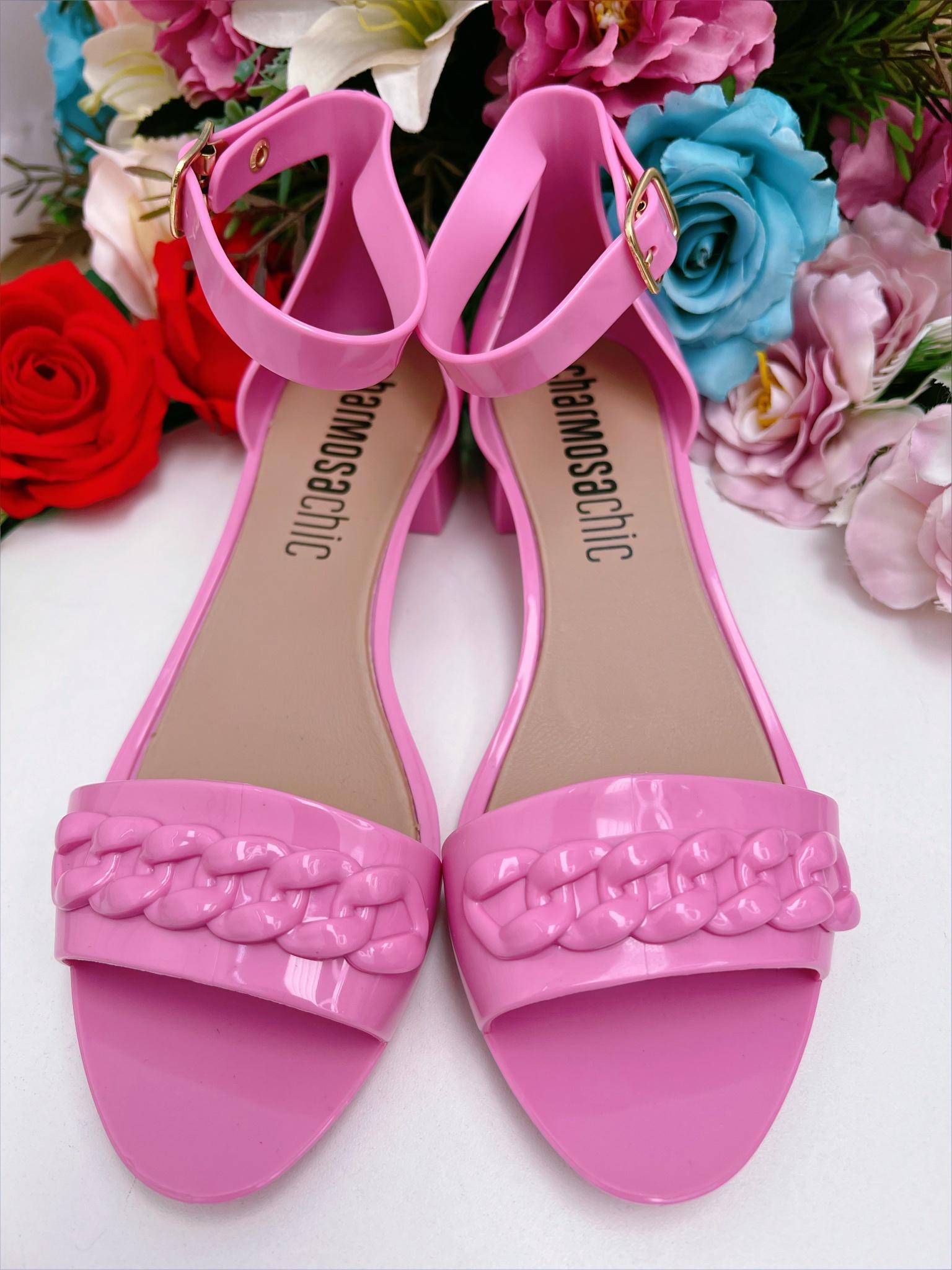 Sandália Salto Baixo Corrente Adulto Rosa Chiclete Luxo