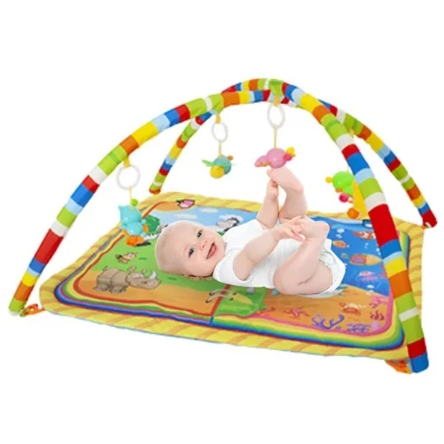 etamente da selva, trouxe para a garotada o incrível Tapete de Atividades dos nossos amigos da floresta, o tapete em tecido macio e aconchegante 5 móbiles com chocalhos, com os personagens da Selva que emitem barulhos de chocalhos, Hastes / arcos removíveis.